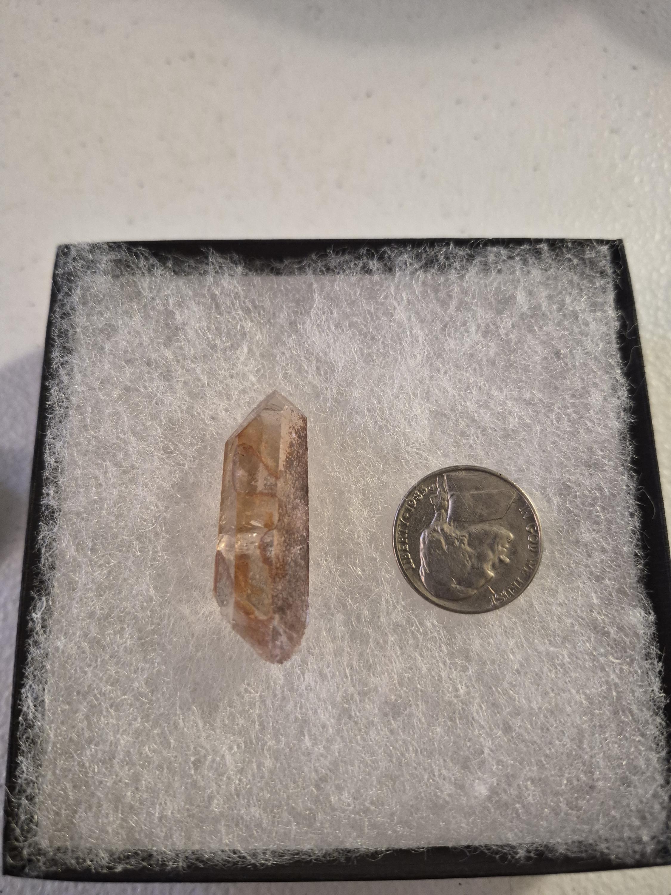 Listed here is a selection of 'Sunset Golden Healer' quartz to choose from. These beautiful crystals display an array of colors very reminiscent to a vivid sunset. The coloration varies from clear, pink, maroon, red, tangerine, golden, and orange due to various impurities of hematite and lithium. These trace metals create beautiful coloration and patterns. They catch the light beautifully, and glow with a warm golden healer feel. These beautiful points also have vivid record keepers, starbrary markings, and geometric keys waiting to be discovered. Some crystals have been lightly buffed or polished along a face or two, otherwise they are completely natural. These Sunset Golden Healers are perfect sized points for mediation, crafting, grids, reki, and more.
